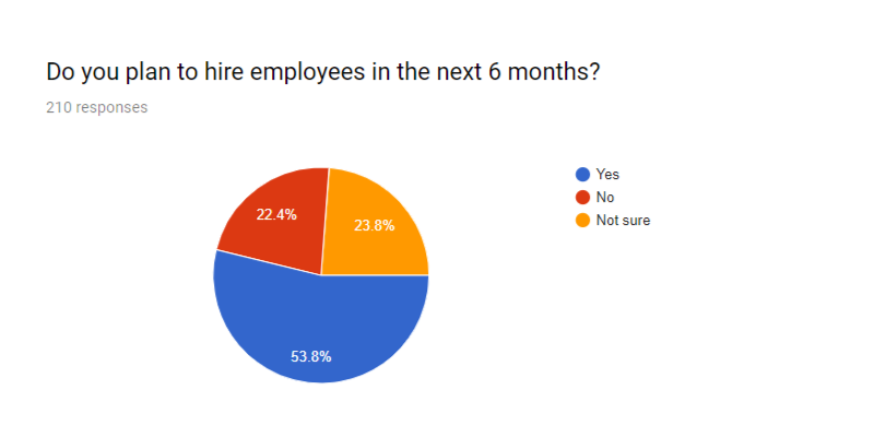 Over half of all respondents (53.8%) plan on hiring in the next six months.