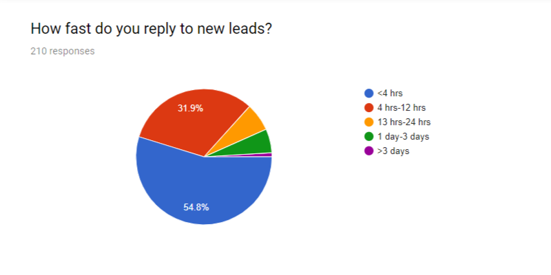 How do agencies close the deal? According to the survey, only 21.9% of all respondents have an outbound sales team; that's 78.1% of agencies who do not have an outbound sales team. But these agencies do have sales tools; in fact, 66.7% say they have case studies on their site to show to potential clients. And when leads are hot, agencies move quickly, with 54.8% saying they respond to new leads in less than four hours.